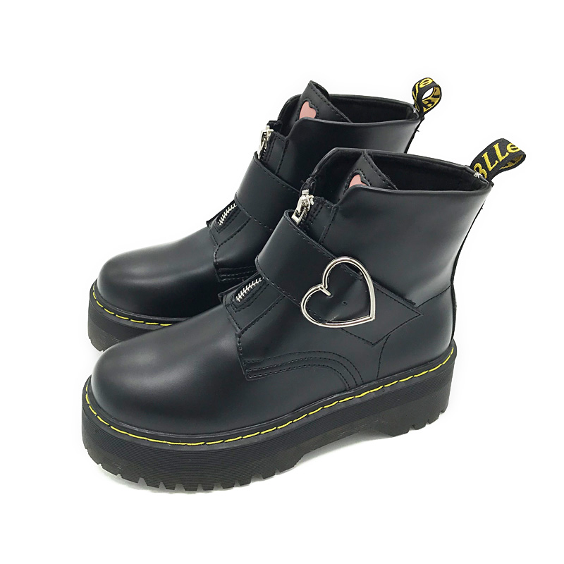 Ботинки грубые пряжка Сердце розовые сердечки на язычке и пятке