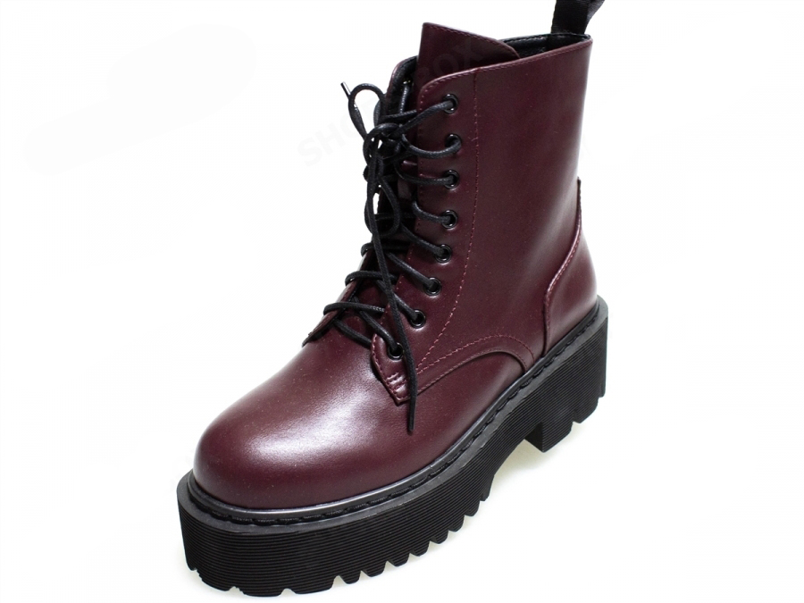 Ботинки бордовые на шнуровке ELENA высокая ребристая подошва