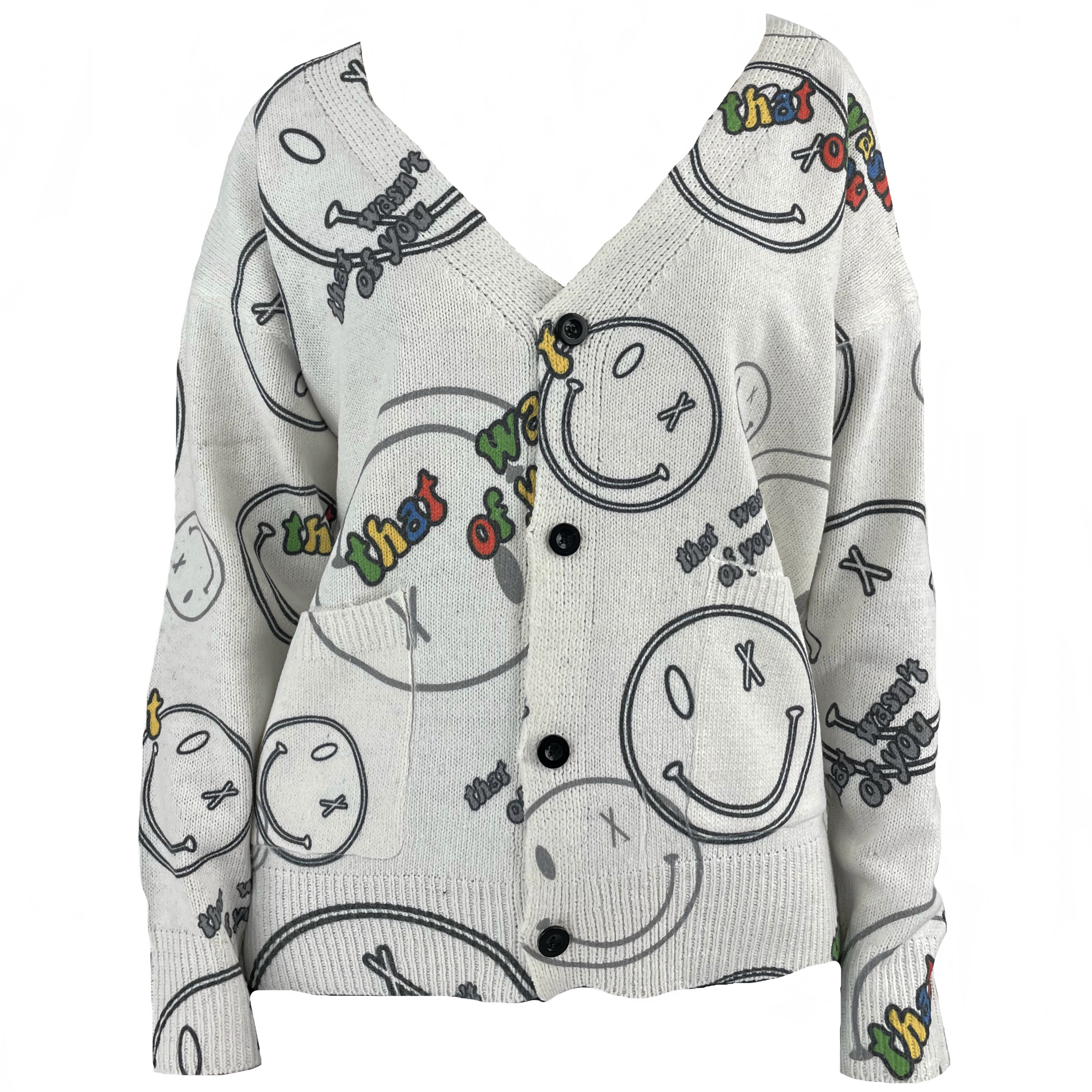 Кардиган oversize цветной принт надписи - Смайлы