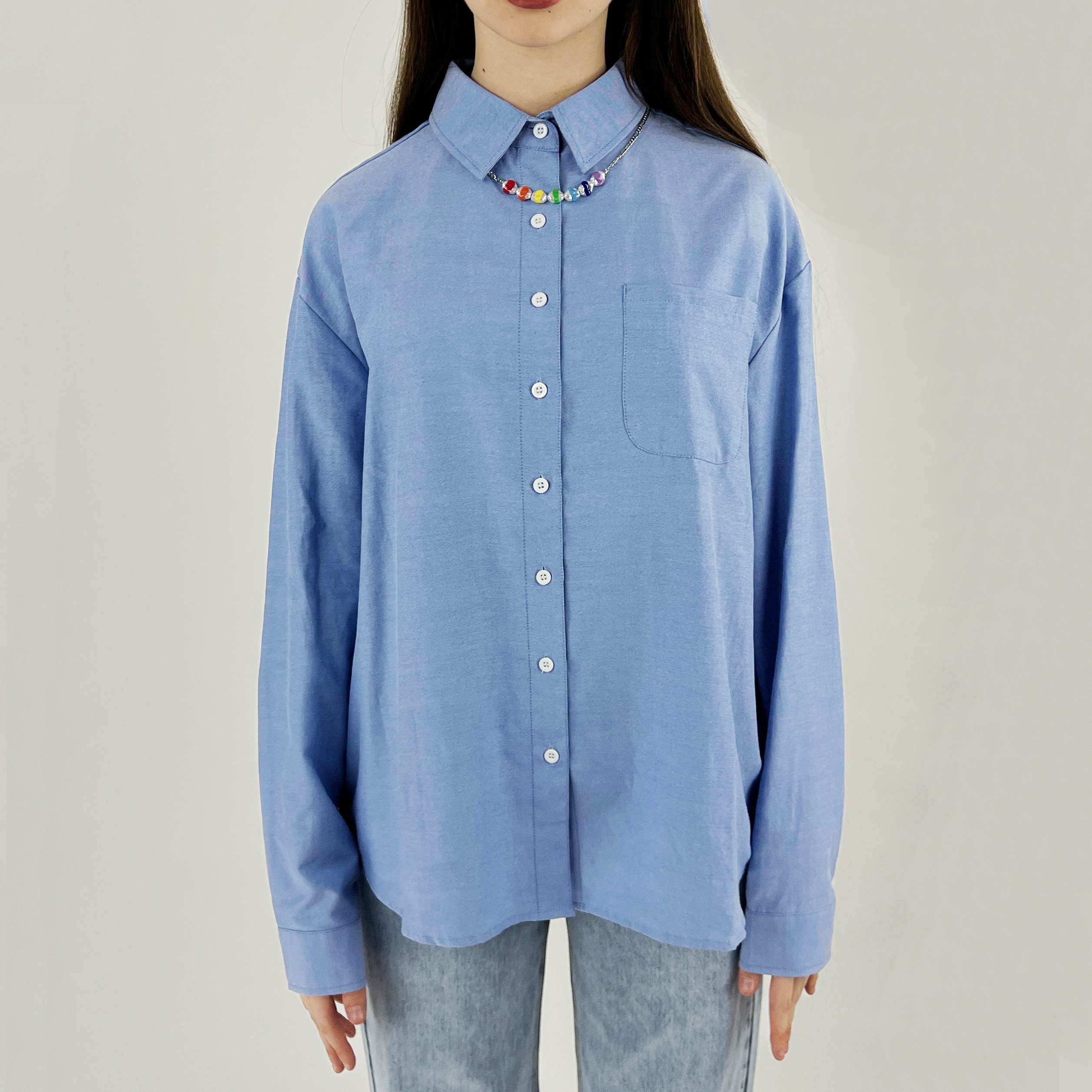Рубашка oversize светло-синяя белые пуговицы