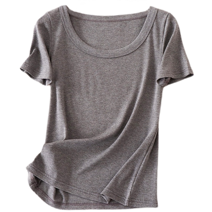 Футболка однотон мелкий рубчик широкая горловина с окантовкой