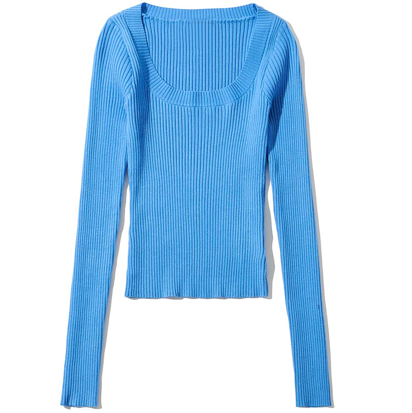 Джемпер трикотаж в рубчик круглый широкий вырез