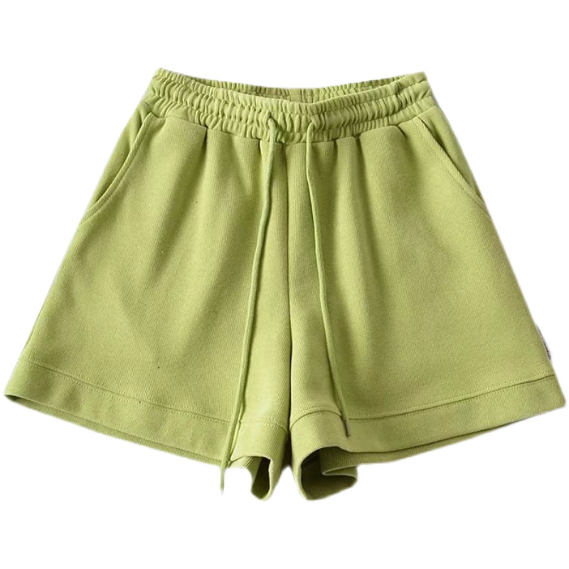 Шорты широкие гладкий рубчик шнурок в цвет черная нашивка с надписью