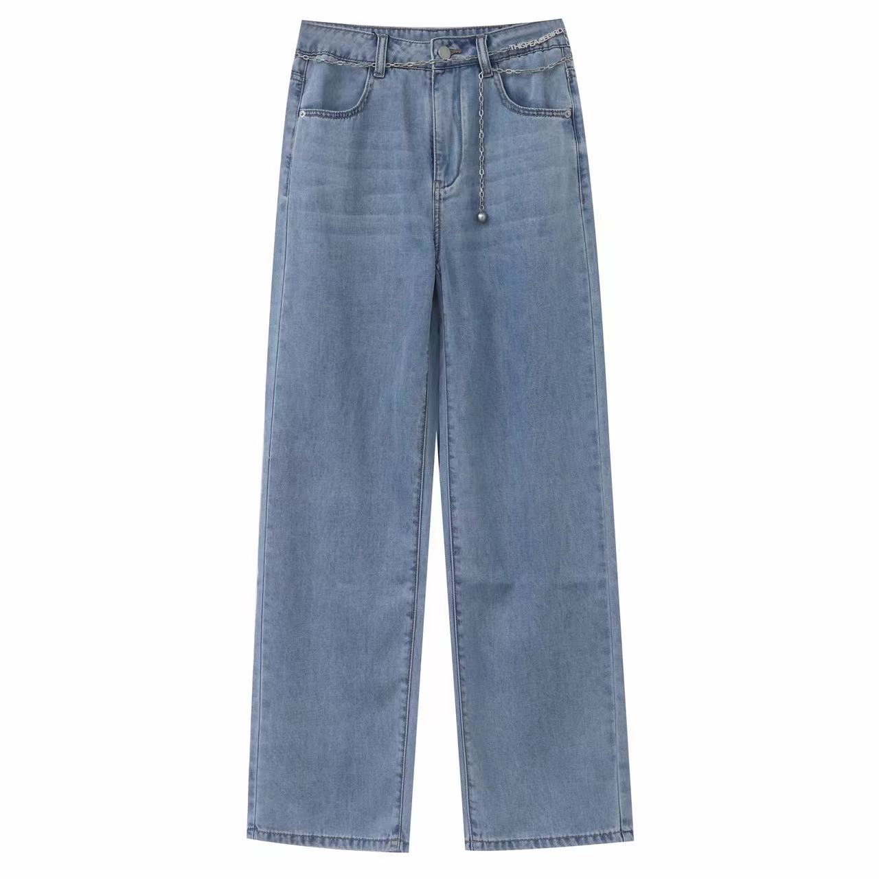 Джинсы прямые пояс цепь сзади нашивка PBW