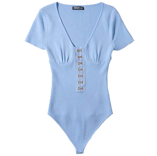 Боди в рубчик короткий рукав акцент на груди по середине на крючках