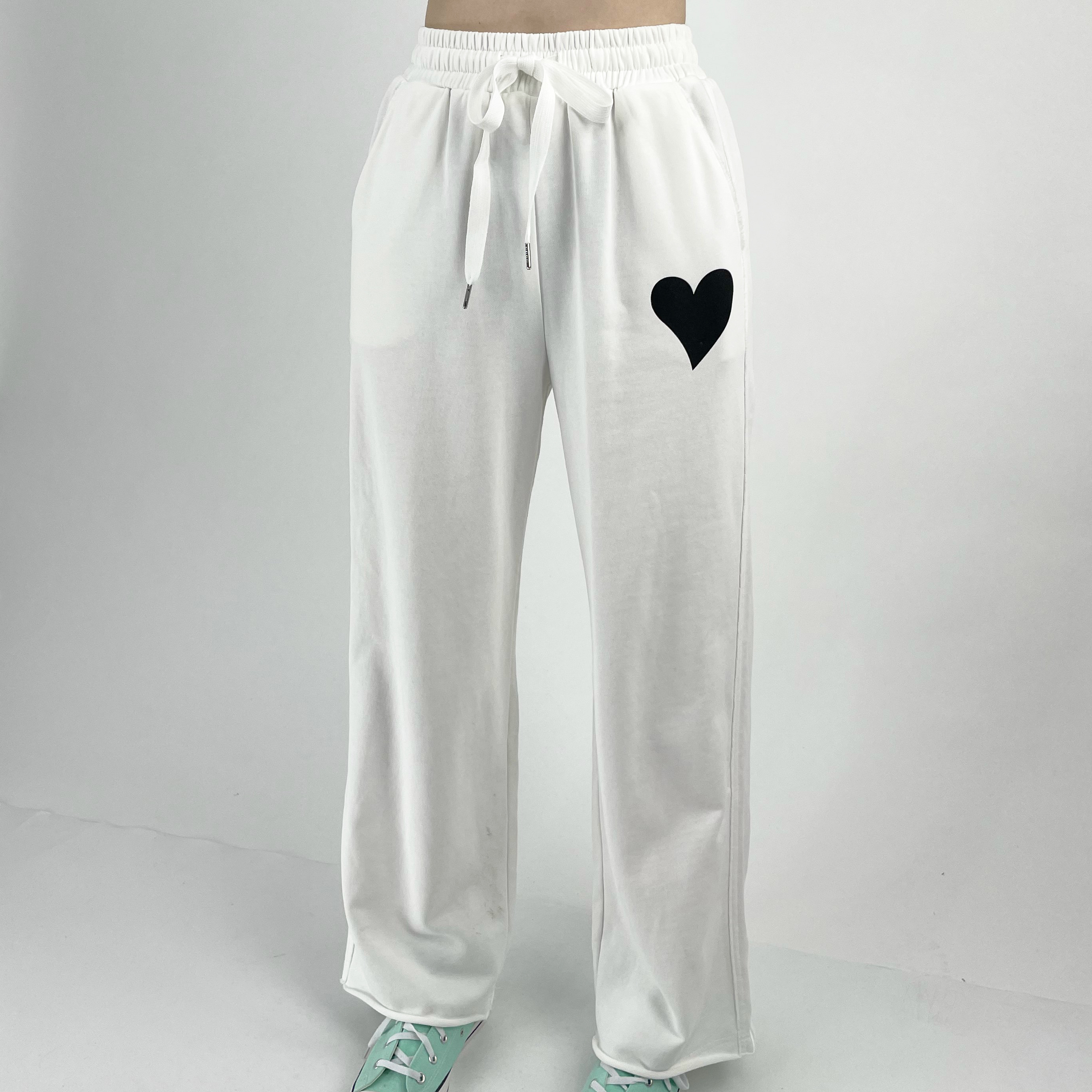 Штаны прямые широкие необработанные края сбоку сердце