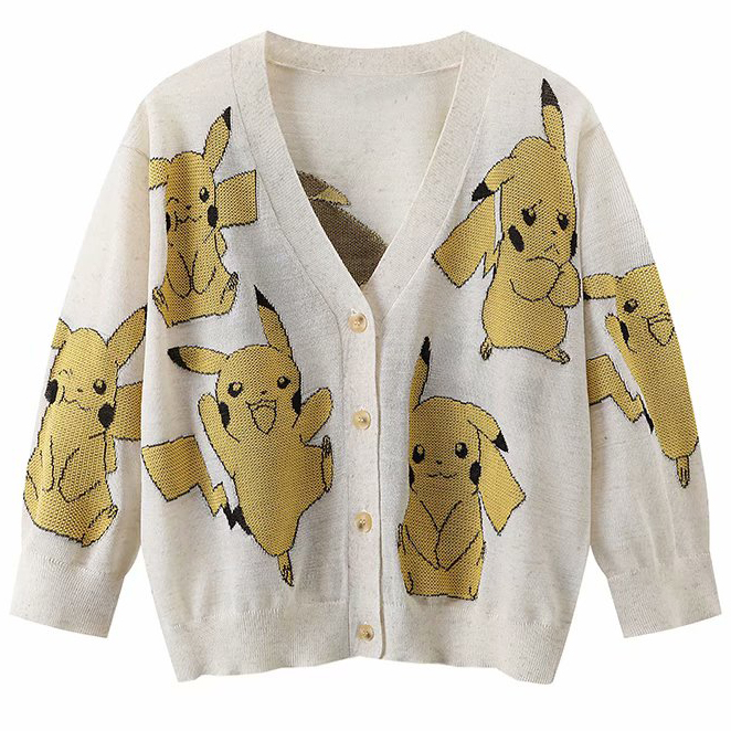 Кардиган 4 пуговицы молочный принт Пикачу
