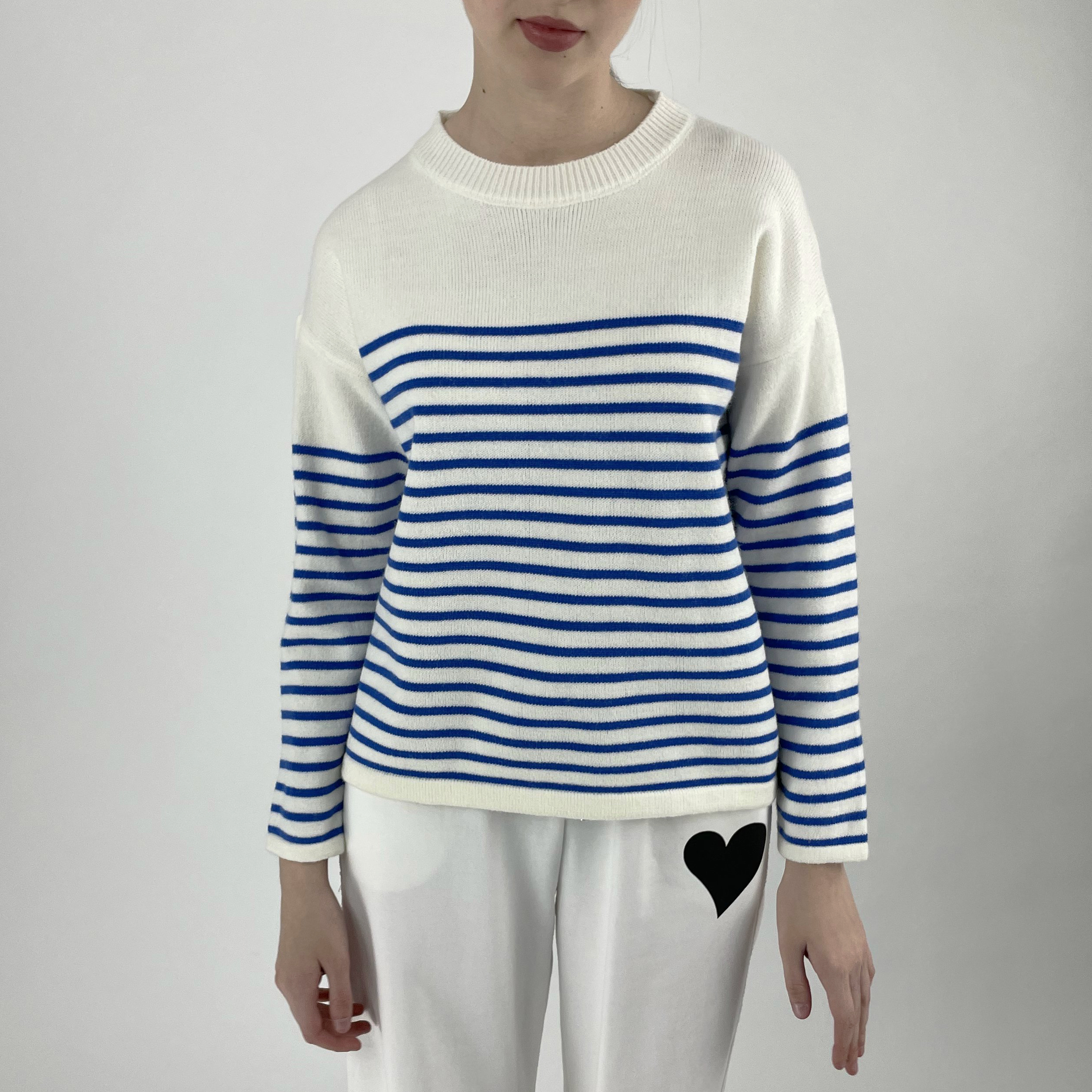 Свитер широкий синие полосы спущен плечовой шов