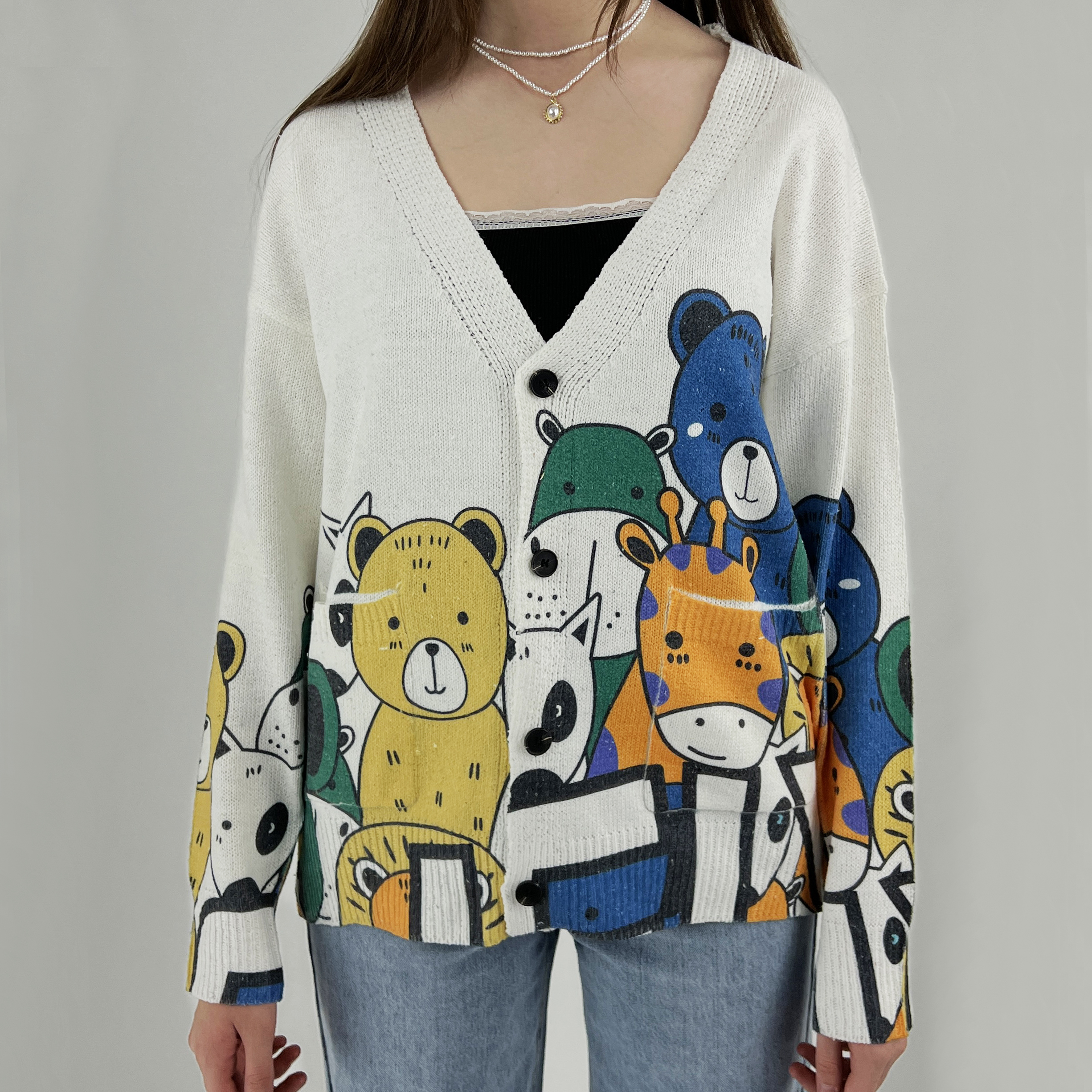 Свитер oversize клетка шашечка мульт медведь смайл OX