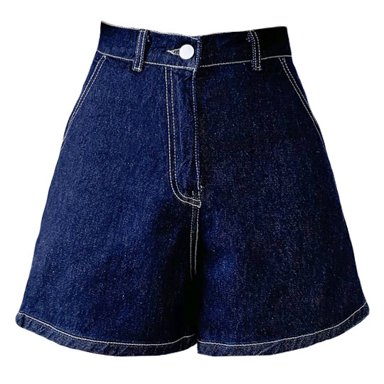 Шорты джинс клеш трапеция темносиние с белыми швами