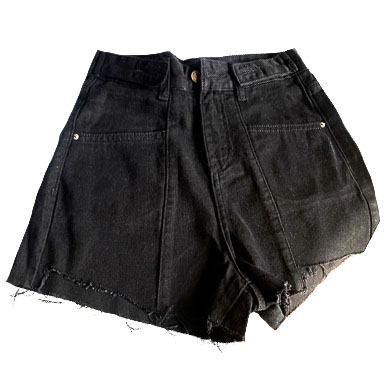 Шорты джинс короткие косые вырезы спреди на поясе хлястики на пуговицах