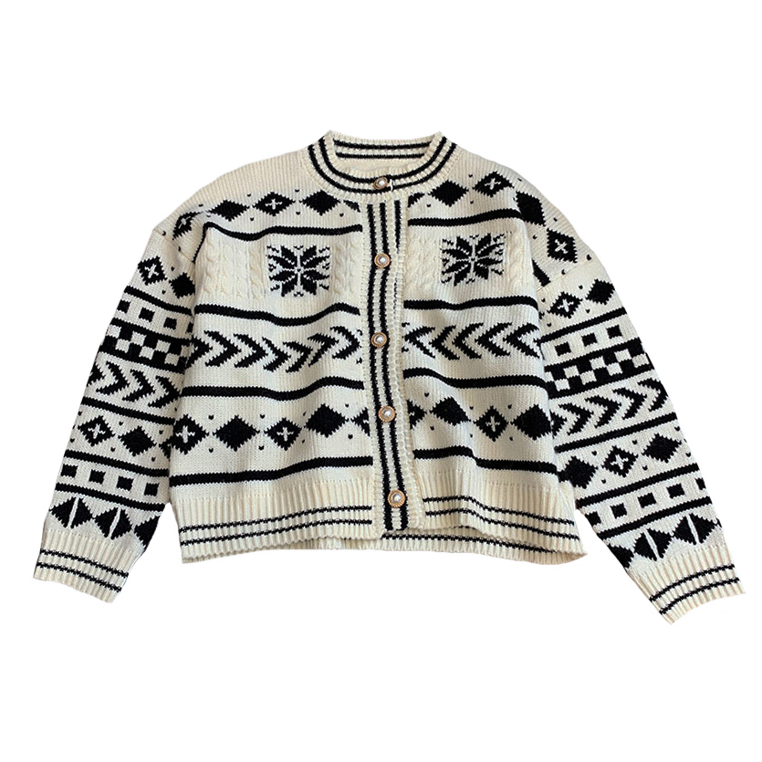 Кардиган молочный с черным орнаментом золотые пуговицы жемчуг