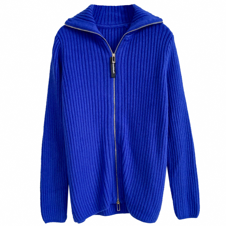 Кардиган длинный на молнии крупный рубчик черная нашивка с надписью