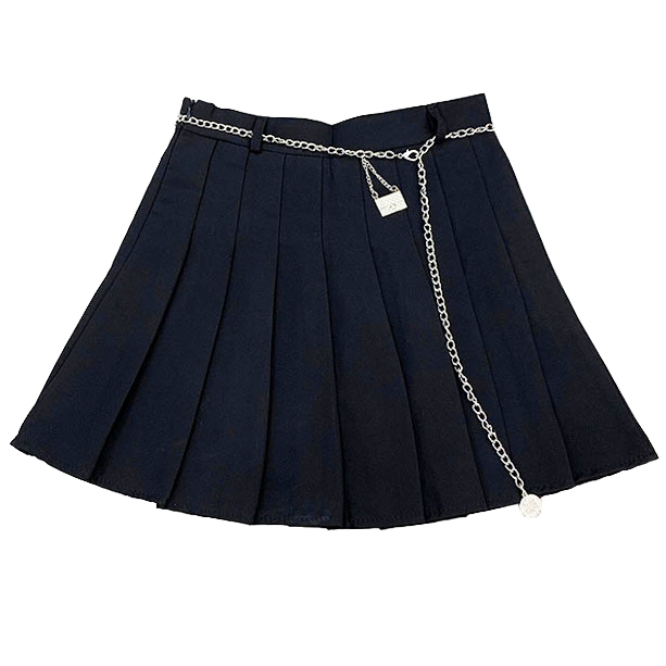 Юбка мини в складку пояс серебряная цепь прямоугольник и круг
