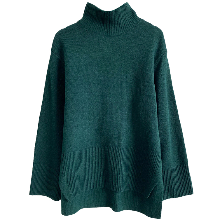 Свитер oversize ворот стойка в рубчик широкий рукав по бокам разрезы