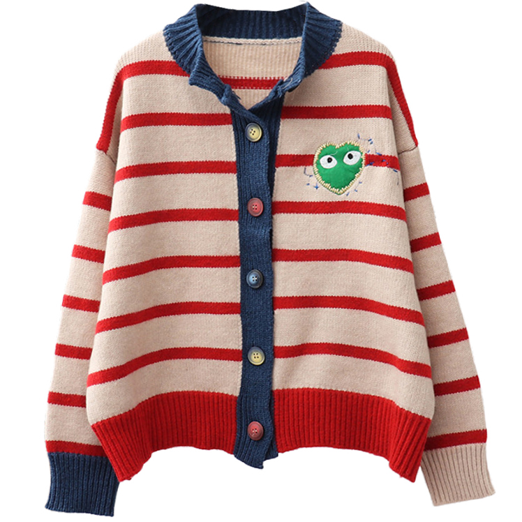Кардиган в полоску нашивка сердце цветные пуговицы