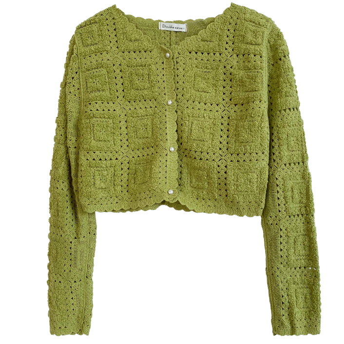 Кардиган короткий узорная вязка крючком 4 жемчужные пуговицы