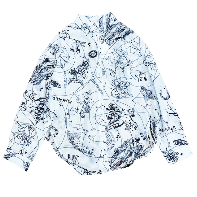 Рубашка свободная длинная полупрозрачная принт созвездия