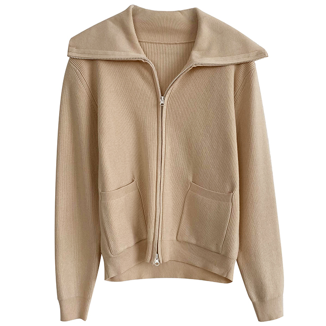Кардиган короткий с карманами на молнии в рубчик отложной ворот
