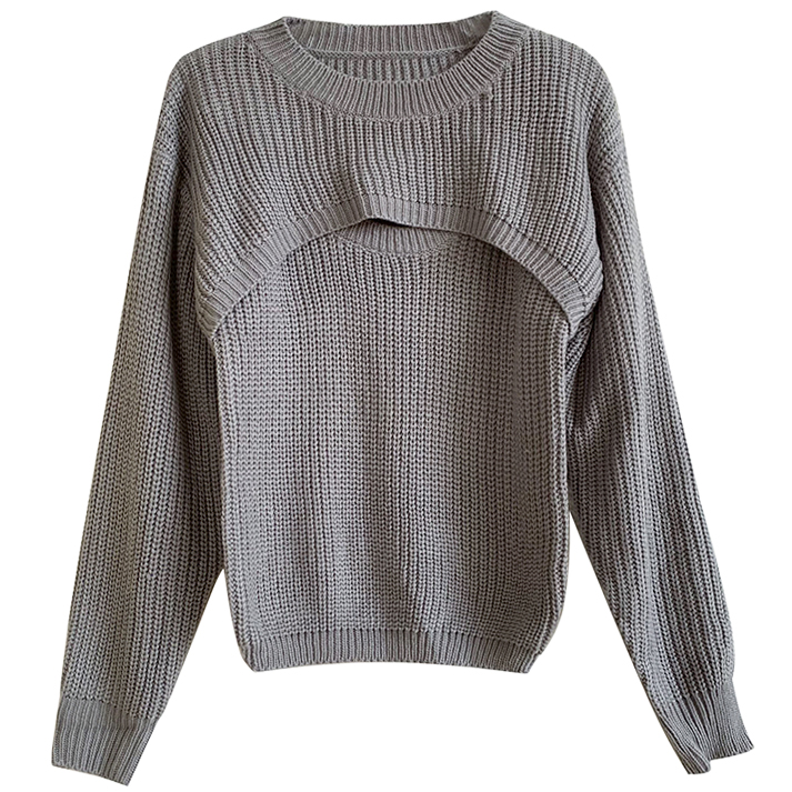 Свитер вязаный круглый ворот в рубчик спущен плечевой шов