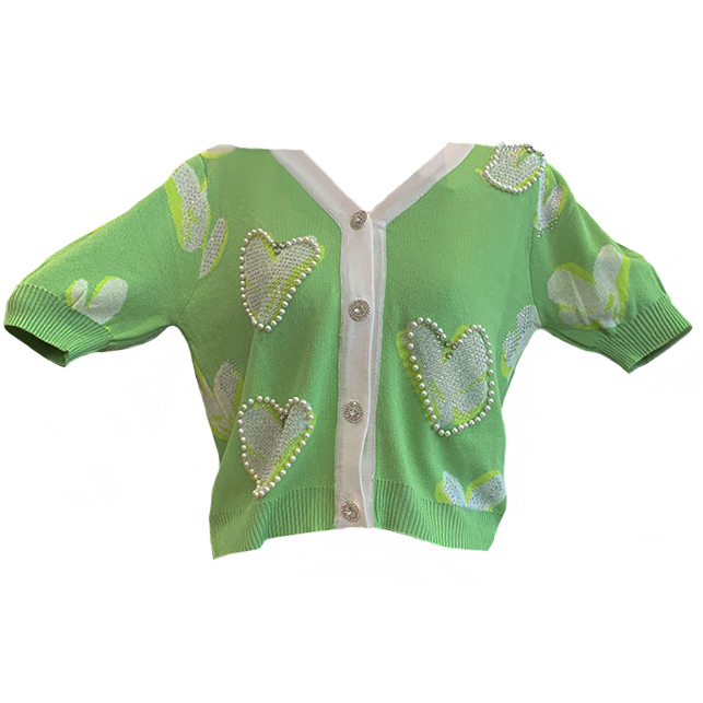 Кардиган короткий рукав узор сердца стразы жемчуг