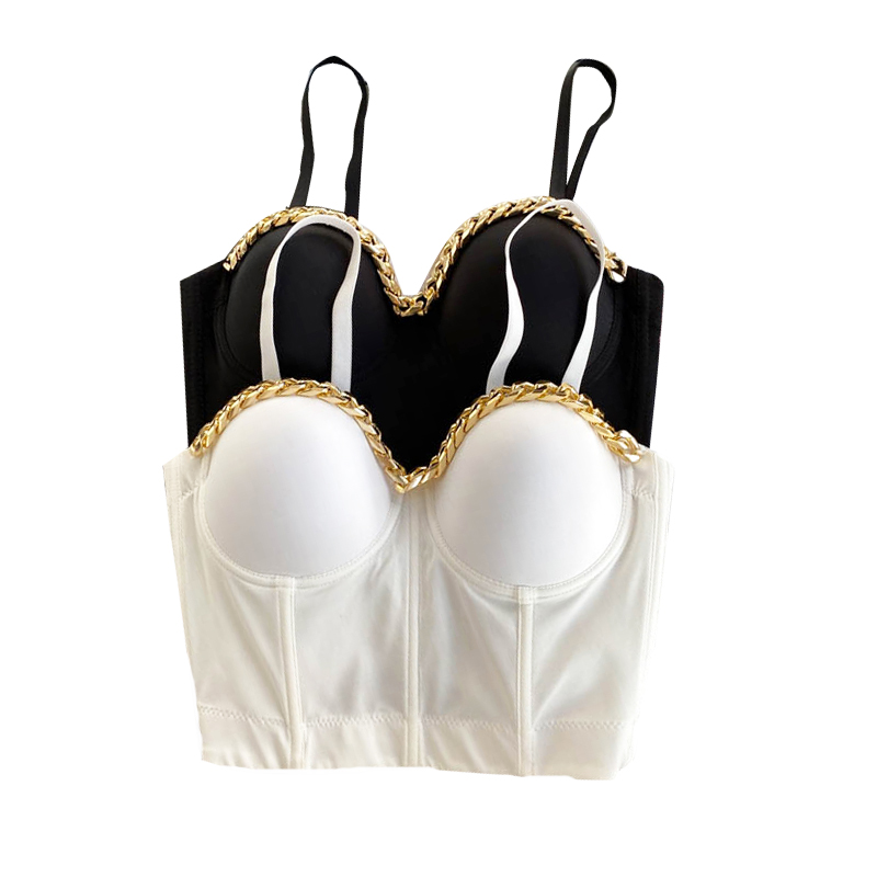 Топ бюстье с чашками корсет с косточками золотая цепь