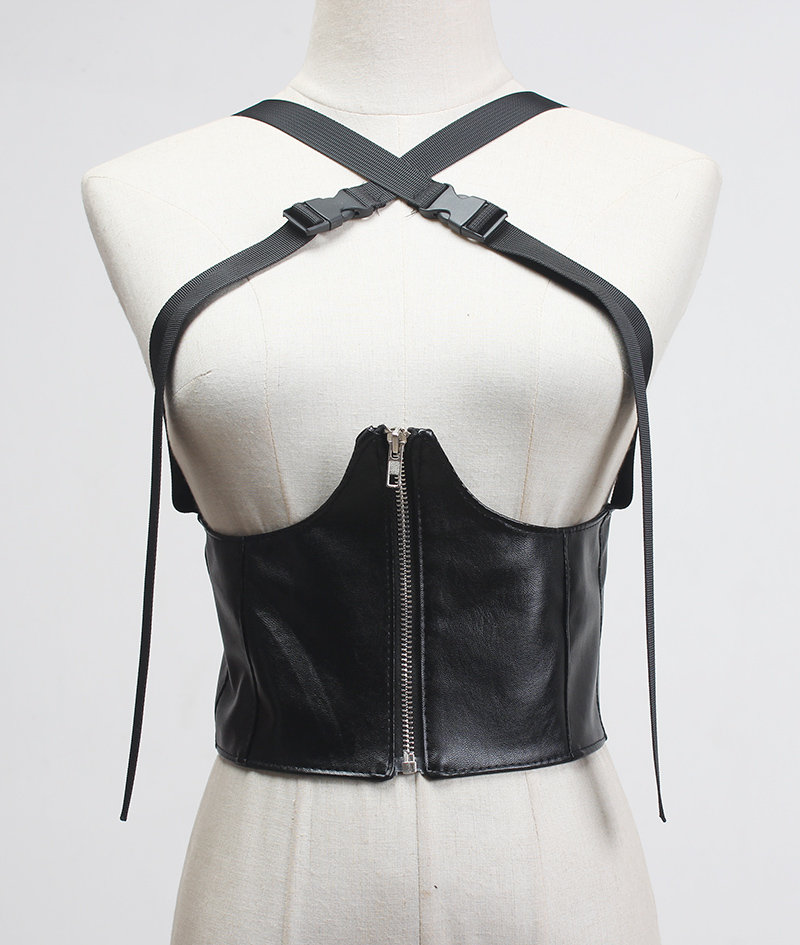 Пояс эко-кожа корсет под грудь на молнии сзади резинка лямки на карабинах