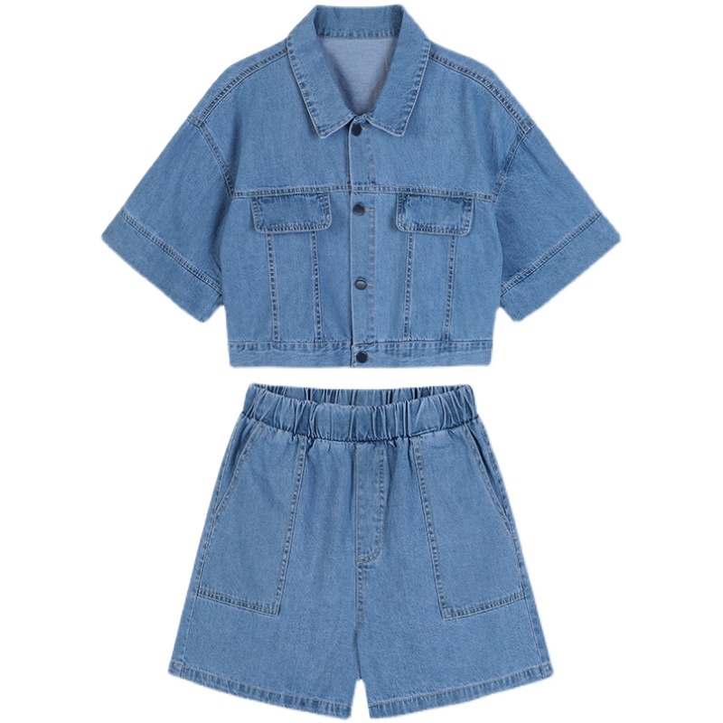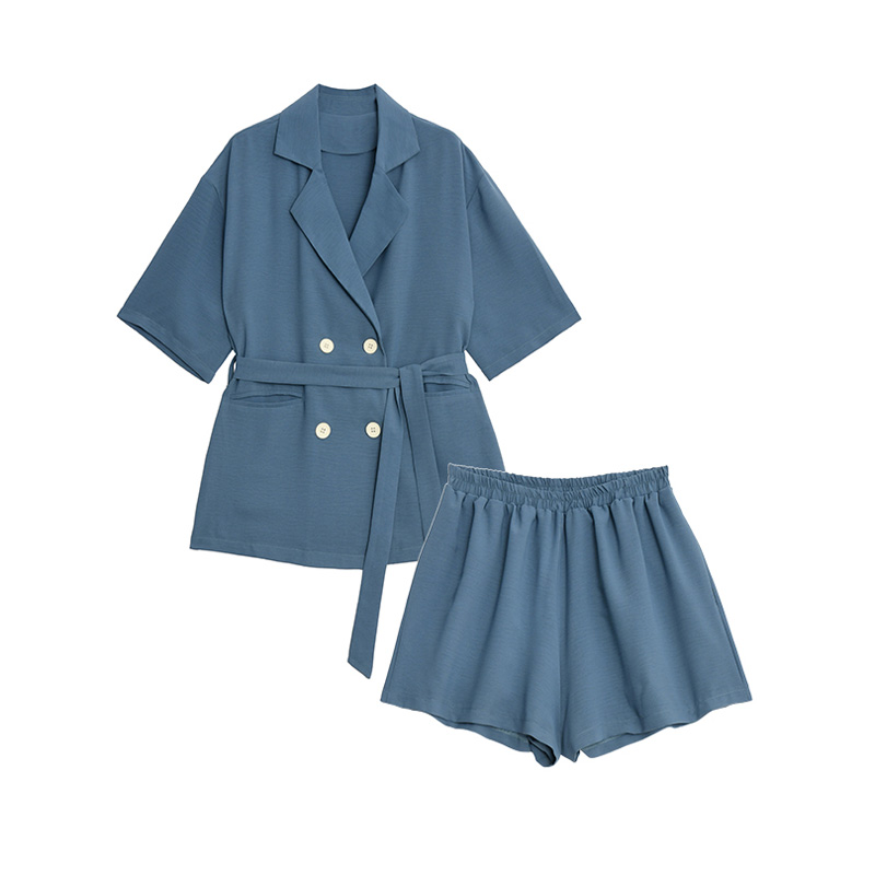 Костюм рубашка короткий рукав 4 белые пуговицы пояс в цвет + шорты свободные на резинке