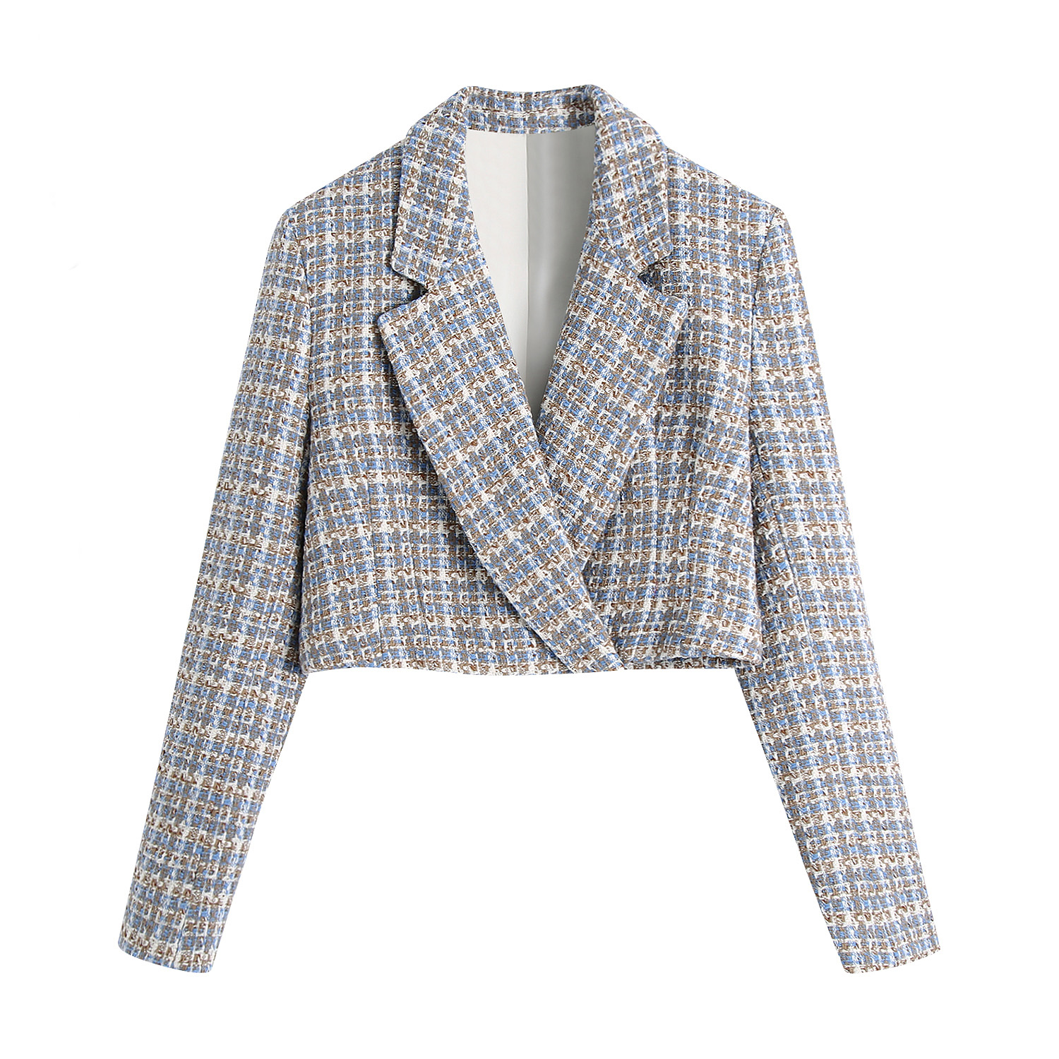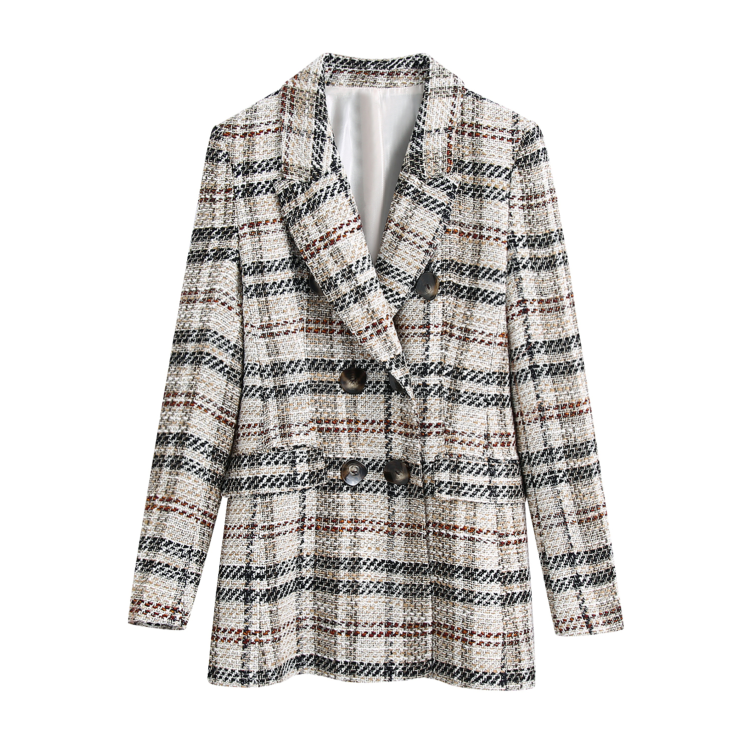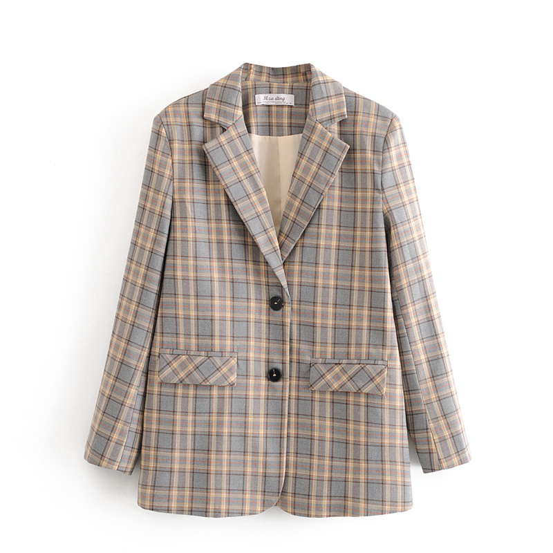 Костюм серый в клетку пиджак прямой + брюки средняя посадка