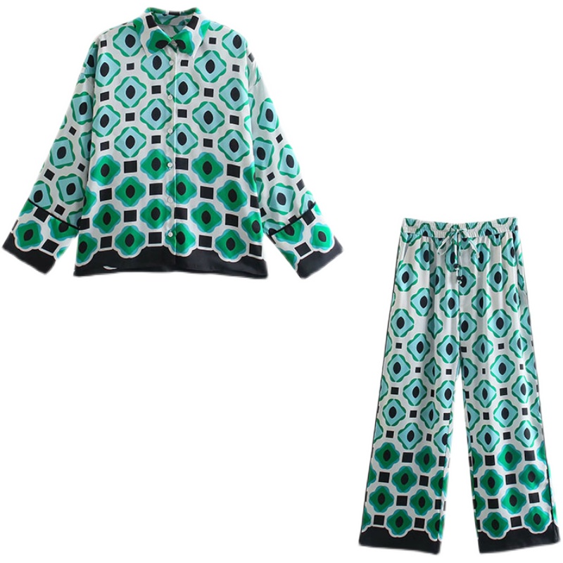 Комплект рубашка V-вырез + брюки принт крупные цветы