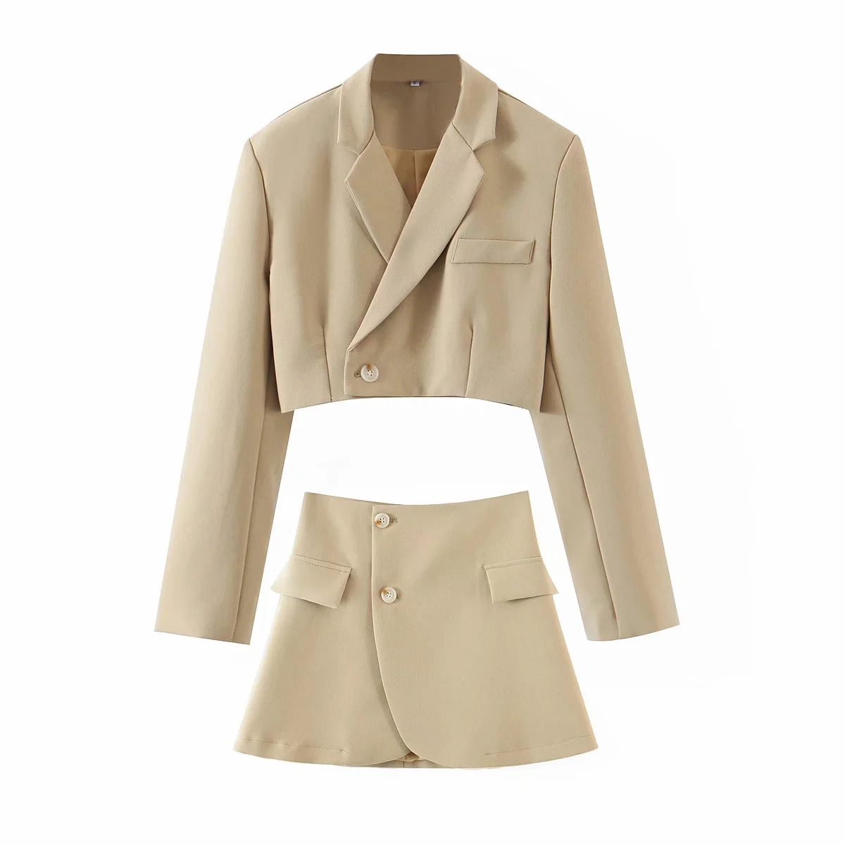 Костюм пиджак укороченный застегивается на запах + юбка мини трапеция