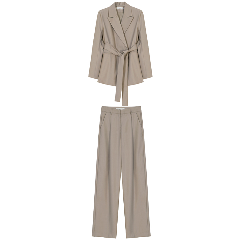Костюм пиджак удлиненный черные пуговицы широкий пояс в цвет + брюки прямые со стрелками