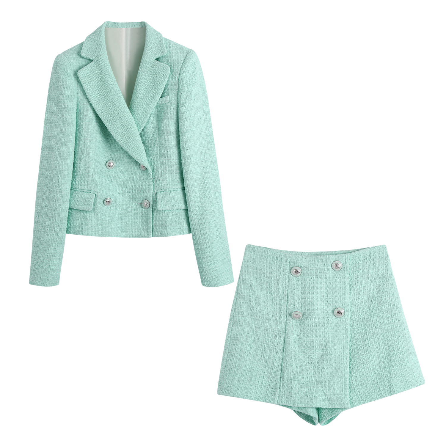Костюм мятный пиджак + шорты серебряные пуговицы