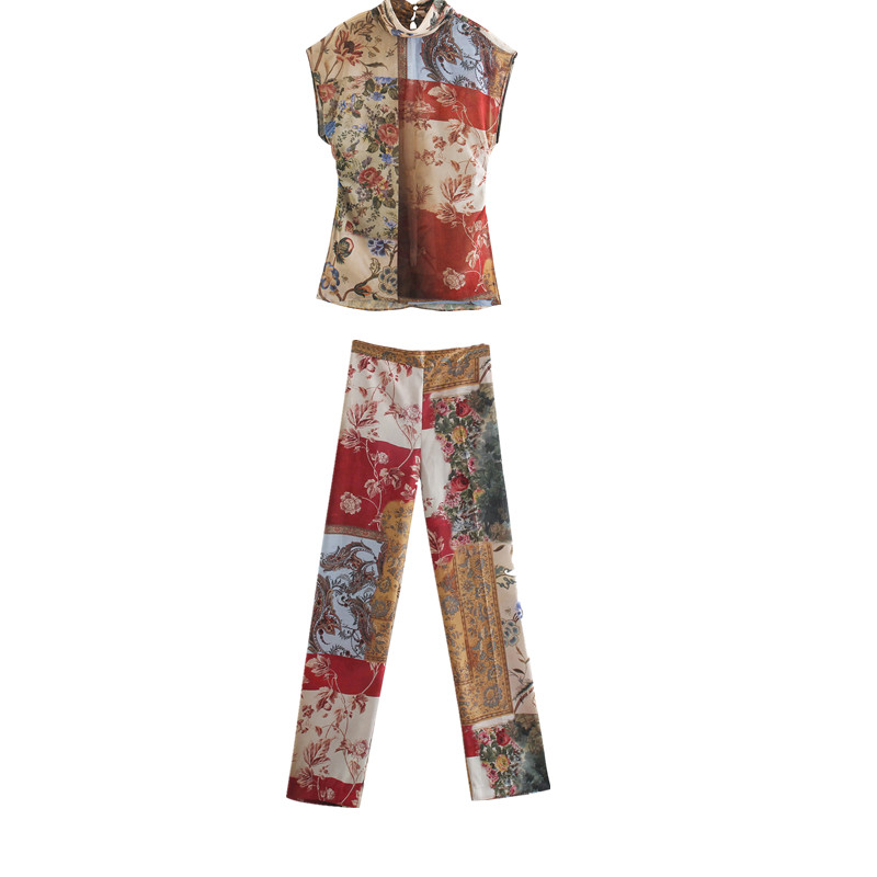 Комплект полупрозрачный топ + свободные штаны в стиле пэчворк