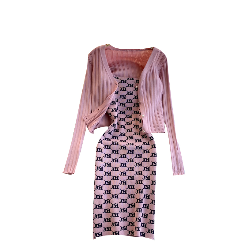 Комплект кардиган в рубчик + платье на брителях принт узоры