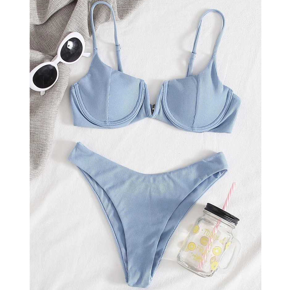 Купальник рубчик лиф на застежке v акцент швы на чашках + трусики галочкой