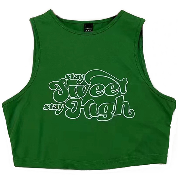Топ мини холтер стрейч принт Stay Sweet Stay High (зеленый)