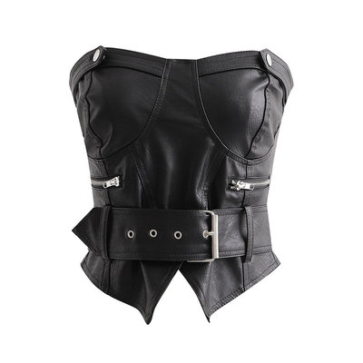 Топ корсет эко кожа акцет на груди широкий пояс 2 молнии
