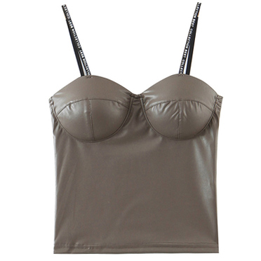 Топ корсет эко кожа акцент на грудь тонкие лямки с надписью collection best