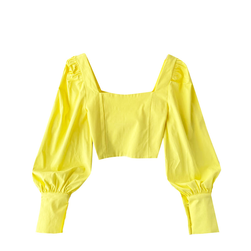 Топ короткий объемный рукав на чашках массивная золотая цепь