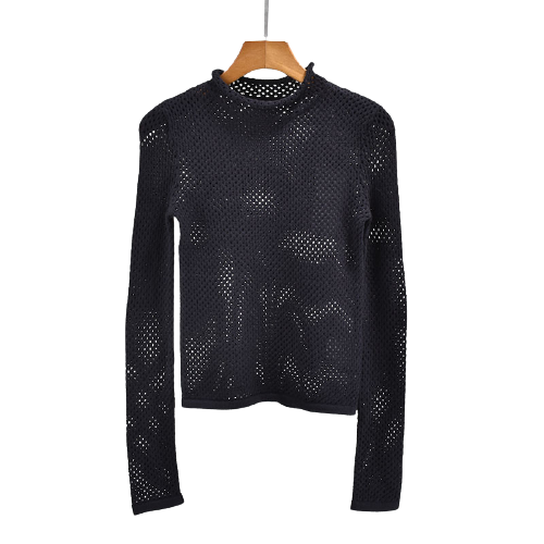 Топ трикотаж диннный рукав декольте галочкой } акцент на груди