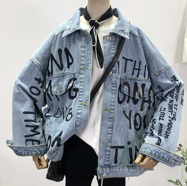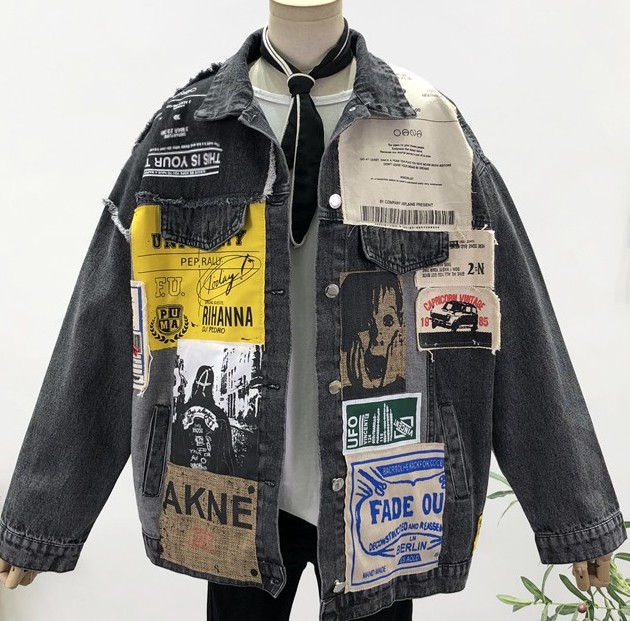 Джинсовка oversize на спине вышивка надпись и голова быка