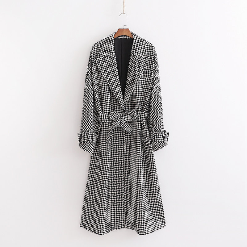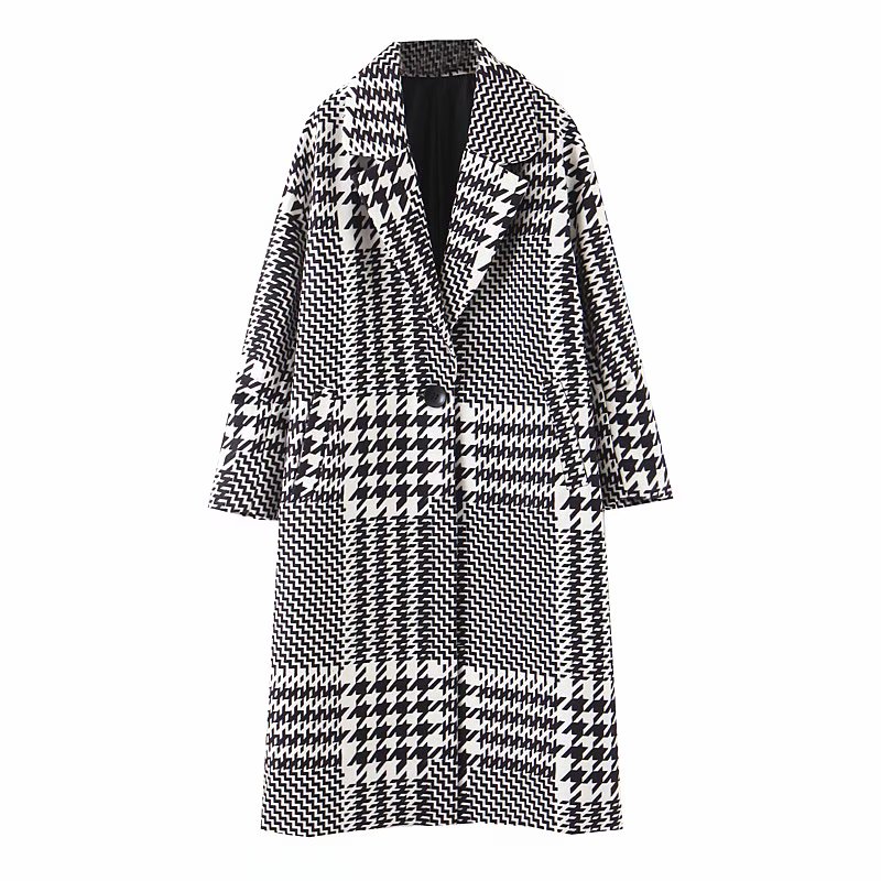 Пальто длинное клетка гусиная лапка разные ч/б узоры