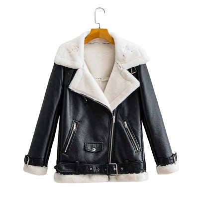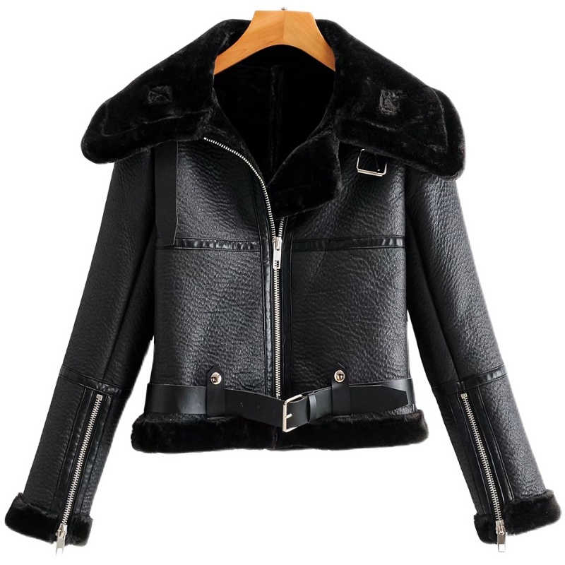 Дубленка короткая широкий ворот молния на рукаве + пояс