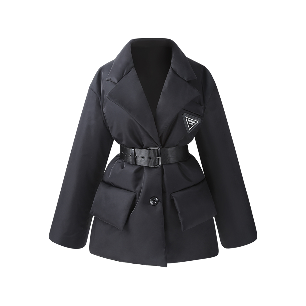 Куртка дутая жакет широкие карманы на рукавах пуговицы + пояс