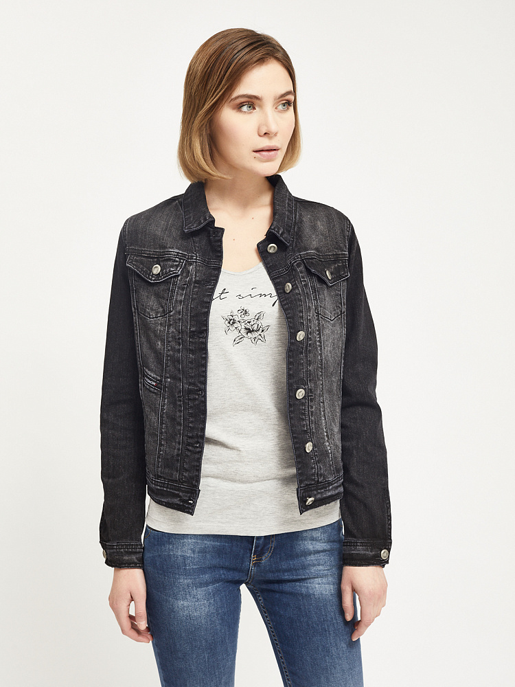 Джинсовка короткая прямая 2 накладных кармана с клапанами