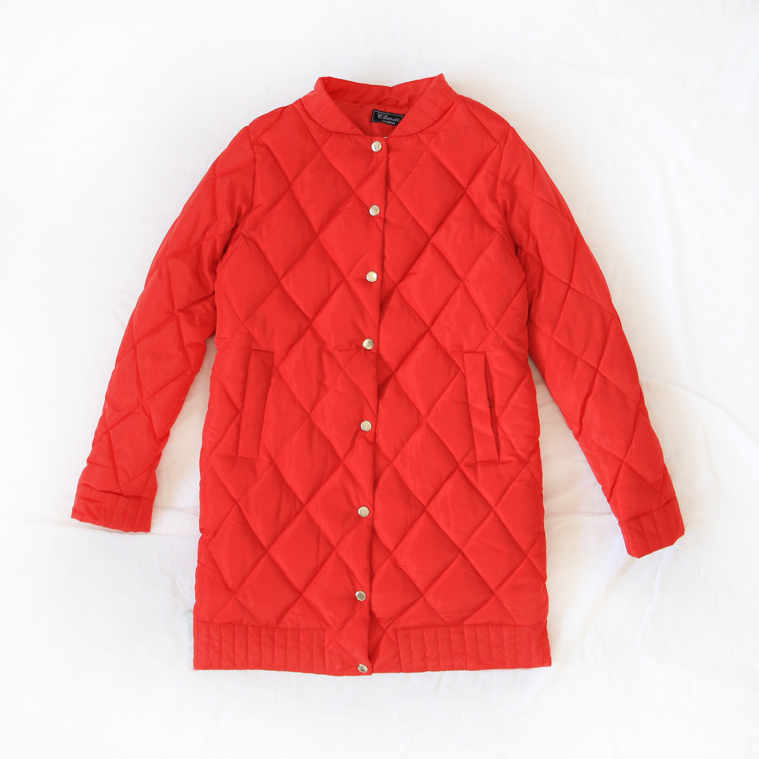 Куртка длинная стеганая ромбами на серебряных кнопках