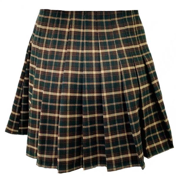 Юбка мини в складку клетка - темно зеленый + бежевый
