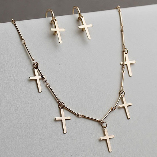 Набор колье тонкая цепь с подвеской из плоских фигур + серьги плоская фигура на цепочке