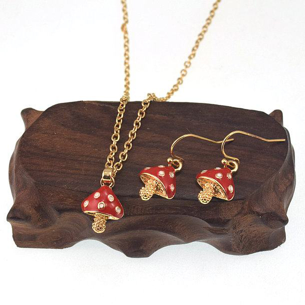 Набор серьги и кулон на цепочке кулон гриб мухомор